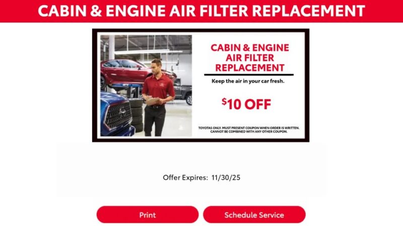 Lancaster Toyota Cabin & Engine Air Filter Replacement